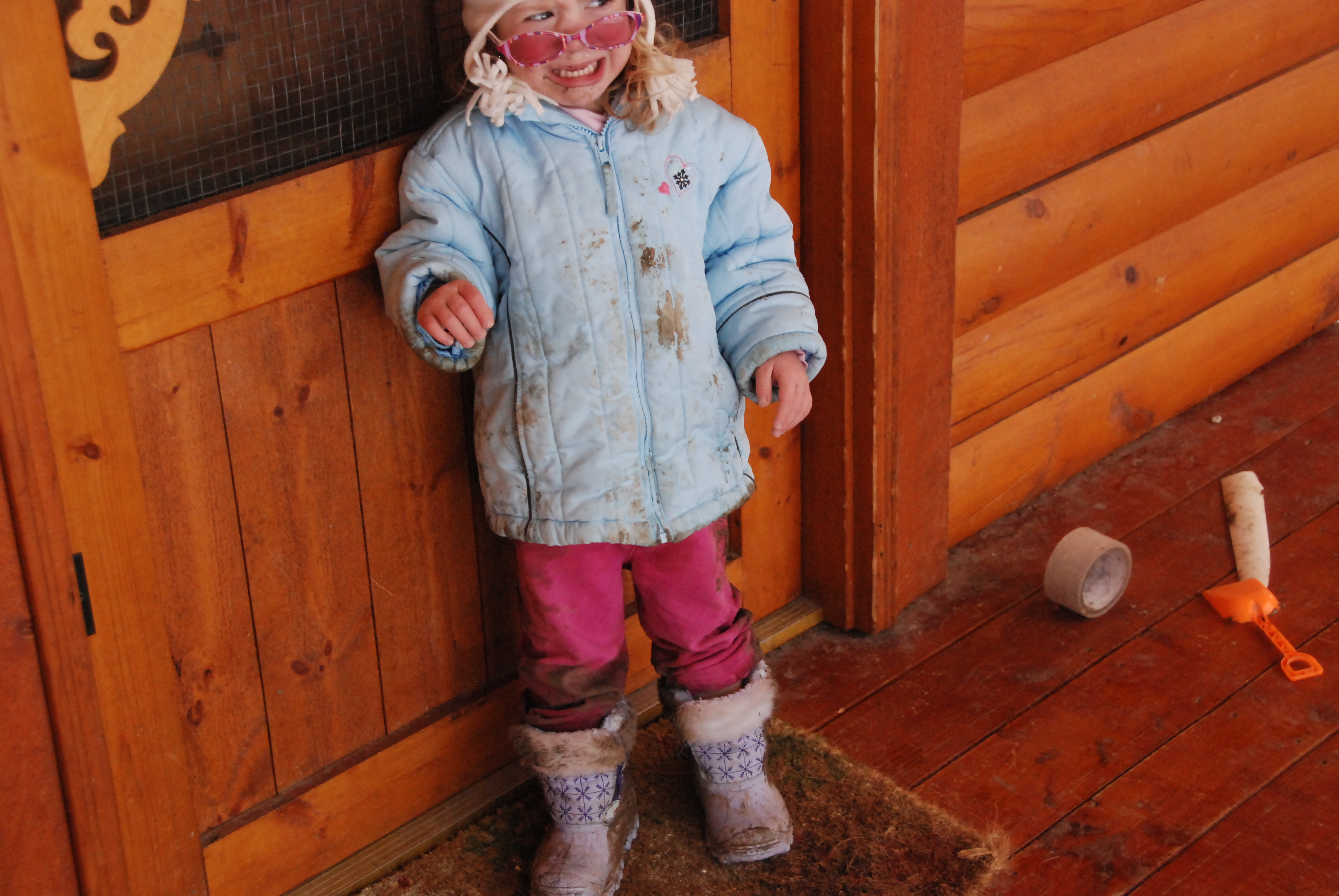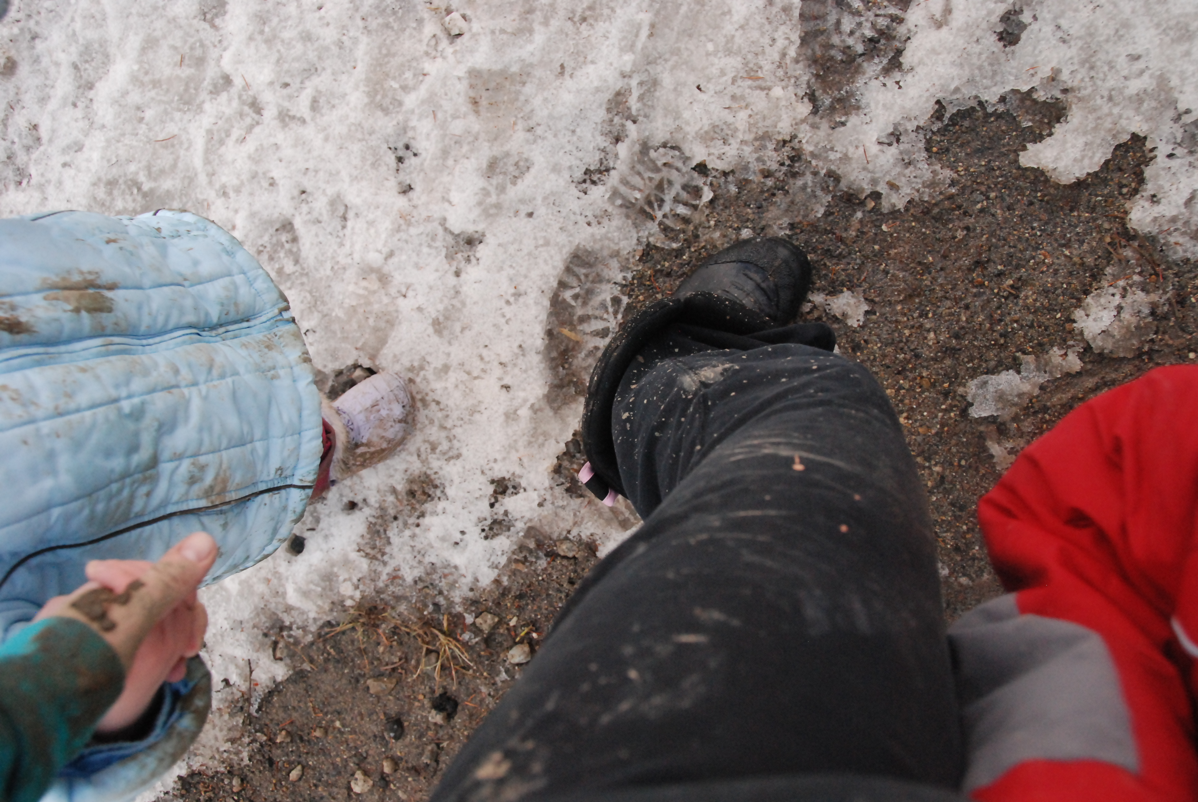 Like lots of it. It’s every four-year old boy and two-year old girls dream. Today we spent three hours building rivers and digging lakes. The kids hiked all the way down to the bottom of ‘switch back’ mountain and all the way to the top. They were absolutely COVERED with mud…head to toe. It was amazing. I wasn’t much better actually, Emily required the occasional ‘carry’. I can hardly wait to discover what is under all this snow and to explore all this place has to offer with my kids. Today…despite the mess…was long anticipated and enjoyed (though…I really need to track down a collection of splash suits and may need one for myself).